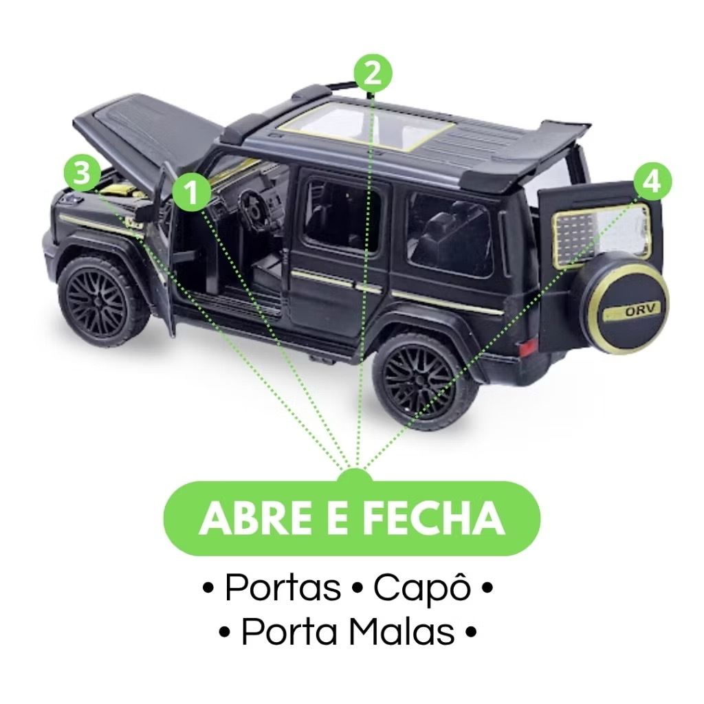 🏎️ Miniatura Mercedes Benz G800 - Escala 1:36 - Abre Portas, Capô e Porta-Malas Colecione ou presenteie com estilo! A Miniatura Mercedes Benz G63 é perfeita para quem ama carros clássicos com riqueza de detalhes e acabamento impecável. Compacta, interativa e cheia de charme! Destaques do Produto: 🛞 Movimento por fricção - É só puxar e soltar! 🚪 Abre portas, capô e porta-malas 🎨 Detalhes realistas com pneus de borracha 🧲 Estrutura em metal resistente 📐 Tamanho: Escala 1:36 (12.5cm x 5.5cm x 5.5cm) Cores disponíveis: Branco, Vermelho ou Preto • Perfeita para: ✅ Colecionadores ✅ Decoração ✅ Brincadeiras e presentes criativos 👉 Garanta já a sua e traga mais diversão ou um toque sofisticado para sua coleção!