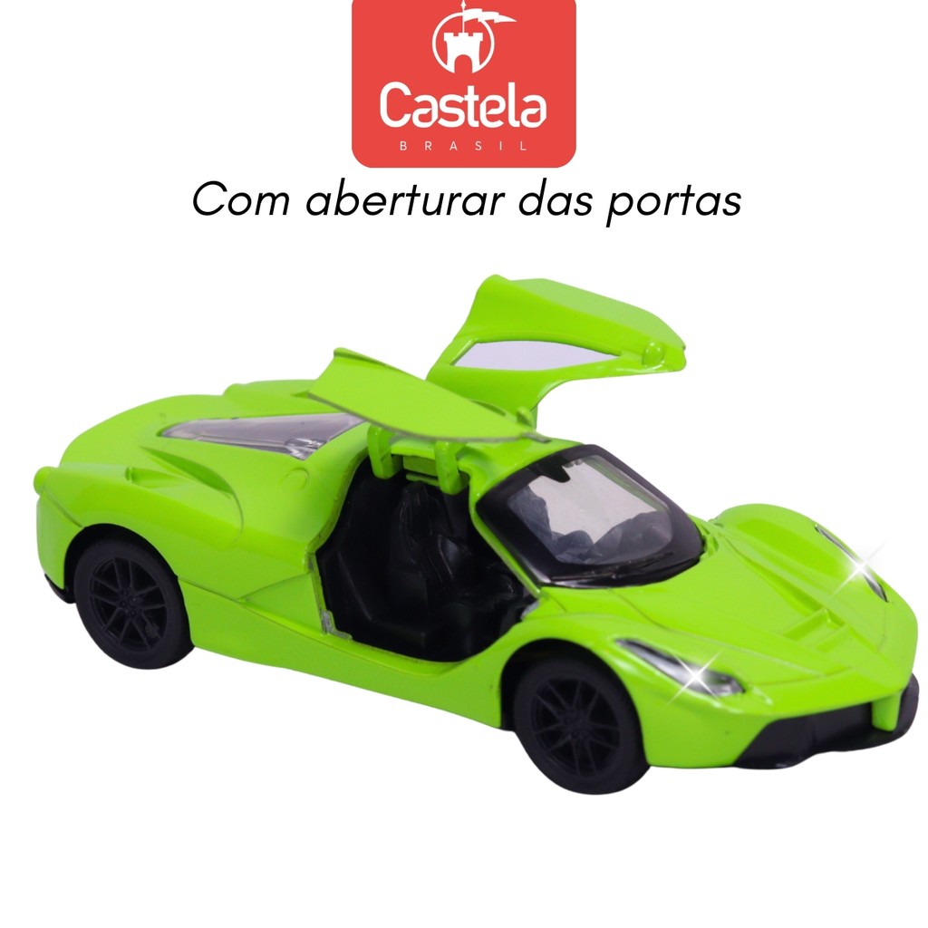 Carrinho Miniatura Verde C/ Som e Luz Pull Back 1:32 Castela