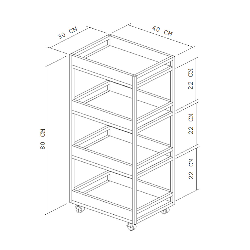 Carrinho Multiuso para Salão, Escritório e Consultório – Estrutura Metálicas 4 Bandejas
