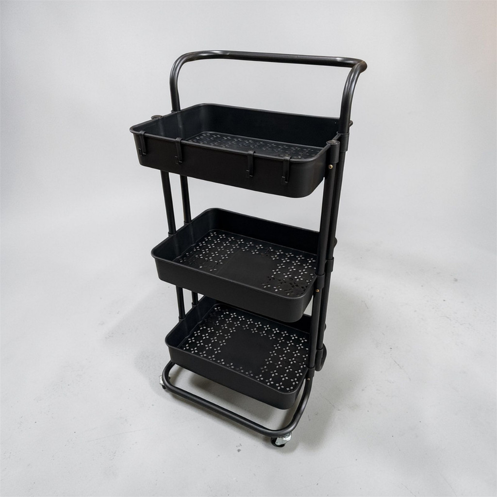 Carrinho Organizador Multiuso com 03 Prateleiras Preto Casa Cozinha Escritório Prático Funcional