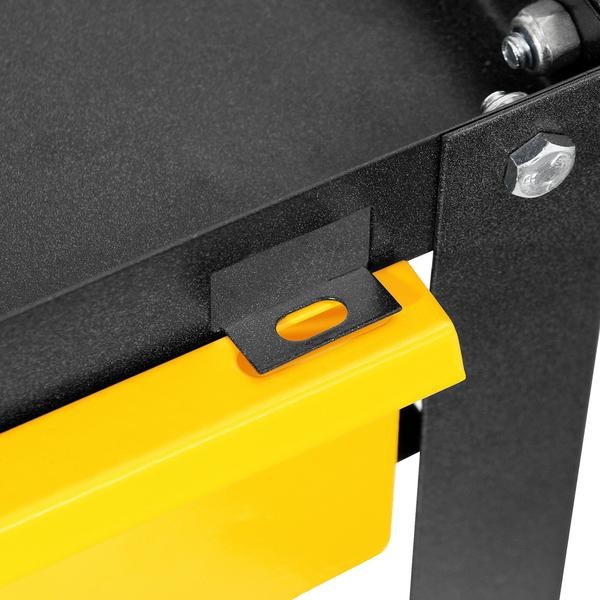 Conteúdo da embalagem 1 Carrinho para ferramentas Aplicações e dicas de uso Indicado para transporte de ferramentas e afins Destaques e diferenciais Possui alça para empurrar/puxar, 4 rodízios de 3", 2 fixos e 2 giratórios, 1 gaveta metálica com fechamento para cadeado e 20 gaveteiros nº 3 DETALHES TÉCNICOS Altura do carrinho para ferramentas: 85,0 cm Largura do carrinho para ferramentas: 40,0 cm Comprimento do carrinho para ferramentas: 60,0 cm Material do carrinho para ferramentas: Aço carbono Cor do carrinho para ferramentas: Preto e amarelo Capacidade de carga do carrinho para ferramentas: 80 kg