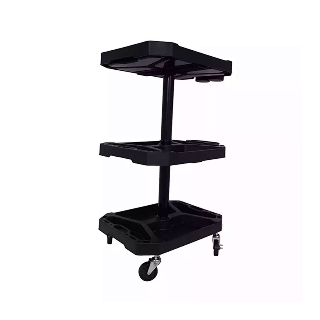 Carrinho Para Ferramentas com 3 Bandejas Modulares Tactix O carrinho para ferramentas com bandejas modulares de plástico e rodízios facilita no transporte e armazenamento de ferramentas. As bandejas são feitas em material plástico com alta resistência e durabilidade. - Possui 3 bandejas modulares - 4 rodízios de 3'' - 2 suportes copo/laterais removíveis - Capacidade de carga de cada bandeja: 15 Kg - Dimensões: Altura: 88,9cm Largura: 39,6cm Comprimento: 70,1cm Código: 326085 Marca: Tactix Ean: 6970834677355 - Possui 3 bandejas modulares - 4 rodízios de 3'' - 2 suportes copo/laterais removíveis - Capacidade de carga de cada bandeja: 15 Kg