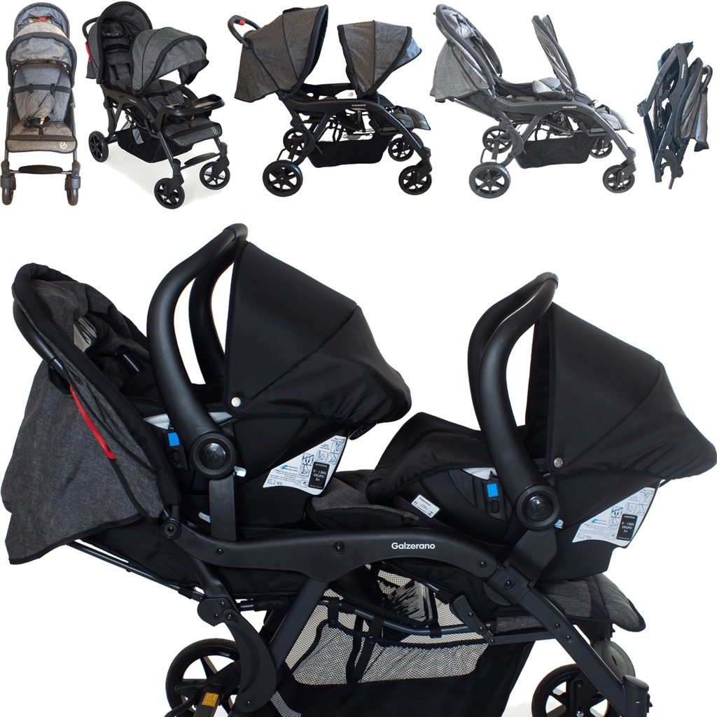 Carrinho para Gemeos Galzerano Doppio 2 Bebe Conforto 2 Bases