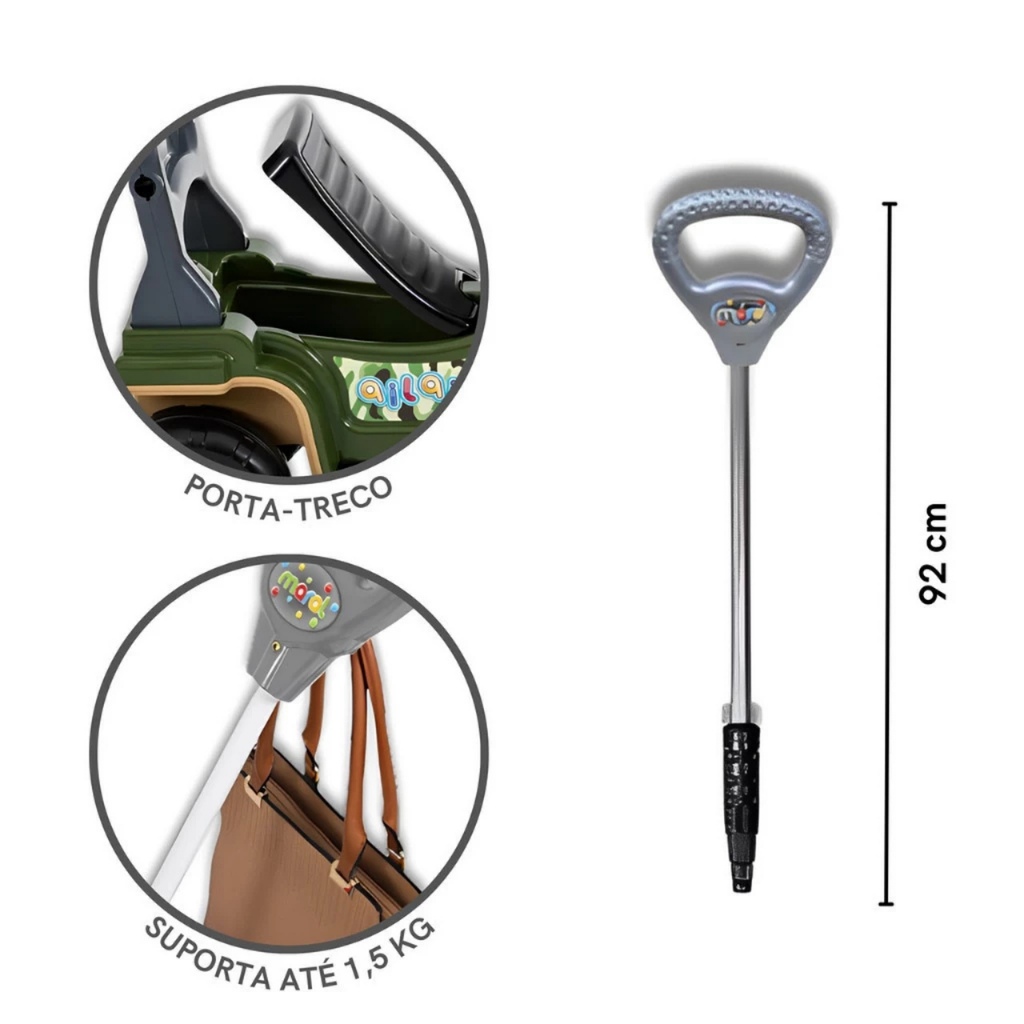 Nome do produto: Jip Jip - Maral Ter um jipe de brinquedo para crianças oferece uma série de benefícios. Primeiramente, promove o desenvolvimento físico e motor, estimulando a coordenação e o equilíbrio enquanto a criança se movimenta. Além disso, proporciona oportunidades para atividades ao ar livre, incentivando a exploração e a conexão com a natureza. Socialmente, brincar com um jipe de brinquedo pode fomentar a interação entre crianças, estimulando a criatividade e o trabalho em equipe. Também contribui para o desenvolvimento emocional, proporcionando momentos de diversão e realização. Por fim, os jipes de brinquedo podem ser uma ferramenta educativa, ensinando sobre veículos, direção responsável e respeito às regras de trânsito desde cedo. Especificações: - Funções: divertir , entreter , competir , desenvolver habilidades - Material: Plástico ABS - Marca:Maral - Obs:O item é desmontável e ajustável! Serve para crianças com +9 meses. - Suporta até 30 KG - Modelos disponíveis: Jeep - Jip Jip Multicolorido ; Jip Jip Menina ; Jip Jip Militar, Jip Jip Bombeiros ( enviado de acordo com a escolha do modelo) Contém: - Haste para empurrar (92 cm) - Pé removível - Porta-Treco - Volante com buzina e marcha - Anel de proteção Dimensões: - Largura: 50 cm - Comprimento: 70 cm - Altura (sem haste) : 50 cm Itens enviados: - 1 Jip Jip - Maral ( de acordo com o modelo escolhido) ------------------------------------------------------------------------------------------------------------------------------ Como funciona para trocas/devoluções dos produtos? As trocas e devoluções acontecem de segunda a sexta-feira, vale lembrar: Antes de solicitar a troca, entre em contato com nossa equipe. Que iremos dar o passo a passo para efetuar os procedimentos. Como faço para tirar dúvidas? A equipe Ngk Store, pensando em dar o melhor atendimento possível, atende de segunda-feira à sexta-feira, das 7h às 20h. E aos sábados e domingos, das 8h às 15h. O nosso atendimento é rápido, prático e eficiente. Para sanar suas dúvidas e dar a melhor experiência possível ao nosso cliente. Os produtos são bem embalados? Os nossos produtos são embalados com muito cuidado, para que cheguem em seus destinos de forma intacta. Caso ocorra algum imprevisto durante a entrega, realizamos trocas, basta entrar em contato. Como funciona o envio dos produtos? Todos os produtos são postados em no máximo 24h após confirmação do pagamento, para garantir um rápido envio para todo o Brasil. Os produtos têm garantia? Sim, todos os produtos possuem garantia de 5 dias pelo fornecedor. Ficou com alguma dúvida? Entre em contato conosco que iremos te responder o mais rápido possível. Procurando por mais produtos? Acesse nosso site e confira novidades e ofertas exclusivas! Boas Compras! Atenciosamente