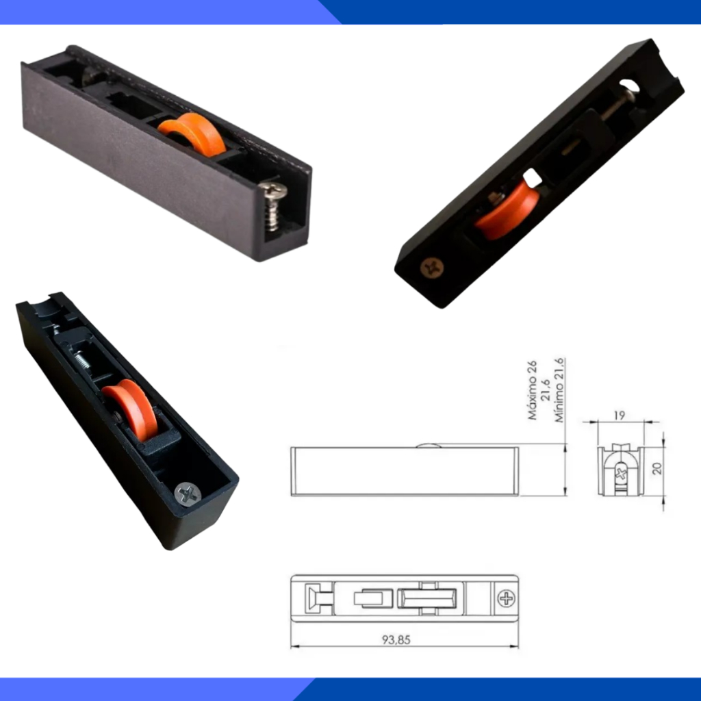 Carrinho Roldana Porta Linha Suprema Simples 50kg Nylon Item: Roldana Linha: Suprema Material: Nylon Peso Suportado: 50kg. Roldana Para Linha Suprema Com Regulagem e Rolamento - ROL-440 A Roldana é muito utilizada em portas, janelas, porta balcão, entre outros. Garante mais durabilidade pois tem o sistema de regulagem e rolamento, trazendo também mais leveza ao movimentar a porta.