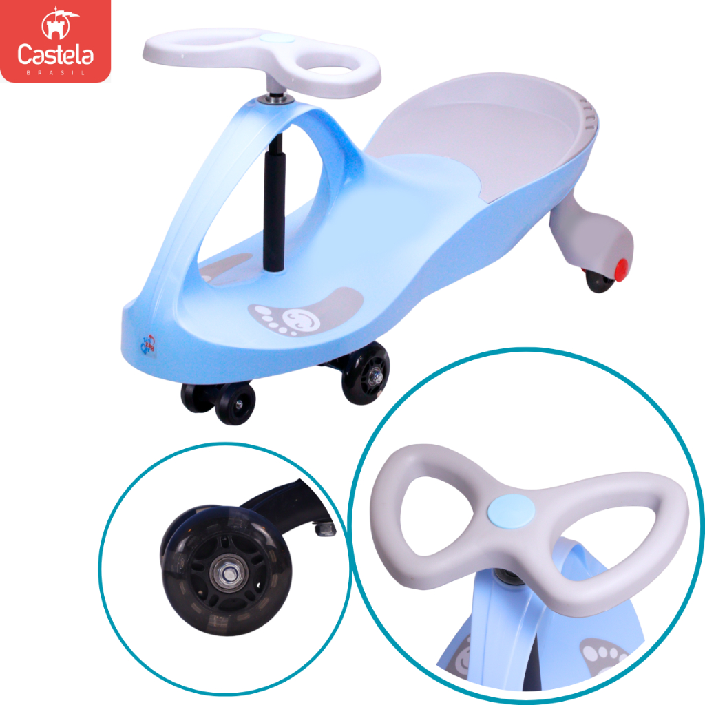 Carrinho Rolimã Zig Zag Car Azul Claro e Cinza 360 Roda Led Infantil - Castela