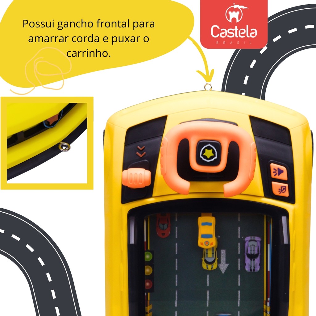 Descrição: Deixe a brincadeira ainda mais divertida com o Brinquedo Infantil Carro Carrinho Simulador de Direção com Volante, Som e Luz! Com design moderno e cheio de detalhes, esse carrinho foi desenvolvido para estimular a imaginação e proporcionar momentos de muita diversão. Possui volante interativo que simula a direção de um carro de verdade, com efeitos sonoros realistas e luzes coloridas, tornando a experiência ainda mais empolgante para as crianças. Ideal para desenvolver a coordenação motora, noção de espaço e criatividade, além de incentivar o faz de conta. CARACTERÍSTICAS TÉCNICAS: Conteúdo da Embalagem: 01 Carrinho Interativo 1 Cabo carregador 01 Corda par amarrar Dimensões Aproximadas da Embalagem: 14 cm x 24,5 cm x 40 cm (Altura x Largura x Comprimento/Profundidade). Dimensões Aproximadas do Produto: 14 cm x 24 cm x 38 cm(Altura x Largura x Comprimento/Profundidade). Material/Composição: Plástico. Idade Mínima Recomendada: A partir de 3 anos Alimentação: 4 Pilhas AA (Não Inclusas) Cabo USB (Incluso). Participantes: A partir de 1 pessoa. Marca: Castela. Referência: CBS1090. Outras informações: As cores podem variar entre as imagens mostradas acima e o produto. Imagens meramente ilustrativas. Aviso: As informações e imagens divulgadas são de total responsabilidade do fabricante/fornecedor. Produto lacrado e disponível a pronta entrega para todo Brasil! APROVADO PELO INMETRO