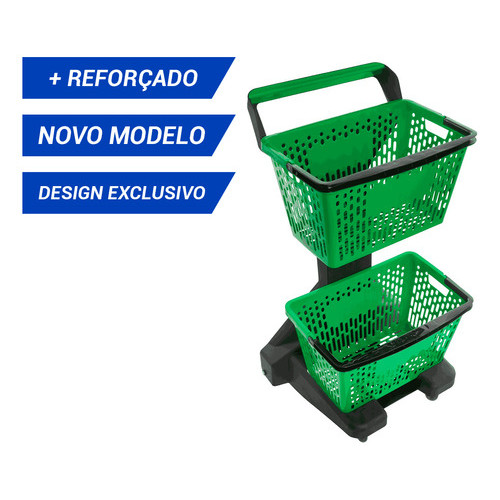 Carrinho Supermercado Plástico New Duplo Cesto 50 Litros Loja Mercado Mercearia Farmácia Compras