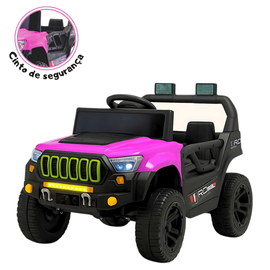Anúncio contém: Dois modelos disponíveis: UTV e Titan Diversão Garantida! As crianças vão amar esse incrível Jipe Elétrico com controle remoto! Com 2 baterias de 6V, o jipe pode atingir até 5 km/h e proporcionar até 60 minutos de aventura. O volante funcional, pedal de aceleração e os efeitos sonoros e luminosos tornam a brincadeira ainda mais realista! Além disso, o controle remoto parental oferece mais segurança para os pais. Com luzes, sons e muito mais, esse é o presente ideal para os pequenos aventureiros! Perguntas Frequentes: Já vem montado? Vem pré-montado. Suporta até quantos quilos? Até 30kg. Pode molhar? Não é recomendado. Possui luzes? Sim. Tem sons? Sim. Modo balanço? Sim. Tem ré? Sim, com acionamento pelo painel e controle remoto. Farol dianteiro com LED? Sim. Farol traseiro com LED? Não. Tem botão para desligar os faróis? Não. As portas abrem? Sim, as duas. Buzina e som do motor no volante? Sim. Pedal para acelerar? Sim. É necessário parear o controle remoto? Sim. Detalhes do Modelo Titan: Dimensões (CxLxA): 96 x 58 x 62 cm Peso: 9 kg Entrada USB e para pen drive: Não Bluetooth: Sim Sons/músicas: Sim Direção: dupla (controle remoto ou pela criança) Capacidade: 1 criança Bateria: 2x 6V4AH recarregáveis (localizadas no capô) Tempo de recarga: Primeira carga: 12h | Demais: 8h Autonomia: 40 min a 1h Carregador: bivolt incluso Cinto de segurança: 2 pontos com regulagem Controle remoto: incluso (pilhas não inclusas) Assento e rodas em plástico resistente Fabricante: Bang Toys Detalhes do Modelo Adventure: Dimensões aproximadas do Jipe (AxLxC): 54cm x 57cm x 91cm. Dimensões aproximadas da caixa (AxLxC): 28cm x 51cm x 84cm. Peso aproximado do produto: 10,2 kg. Idade Recomendada: Crianças à partir de 3 anos. Peso máximo suportado: 30 Kg. Recomendado somente: 1 criança por vez. Velocidade atingida: de 3 a 5km/h. Tempo aproximado de funcionamento: 40/60 minutos. Carregador: Bivolt. Bateria: 2 Baterias de 6V. Especificação da bateria: 6V4AH/20HR. Acompanha controle remoto: Sim (Pilhas Não Incluídas). Botão de selecionar velocidade: Não. Pedal acelerador: Sim. Direções do carrinho: Frente/Ré/Direita e Esquerda. Luz: Sim, luz de led no farol dianteiro. Som: Sim, músicas programadas e entrada USB. Material: Plástico e aço carbono. Material das rodas: Plástico Modelo: Jipe. Fabricante: Bang Toys. Observações: Produto novo e em estoque As cores podem variar conforme o lote de fabricação Enviamos com seguro contra extravio Em caso de cópia dessa descrição e fotos, os responsáveis serão cobrados de acordo com a Lei (9.610/98) de Direitos Autorais.