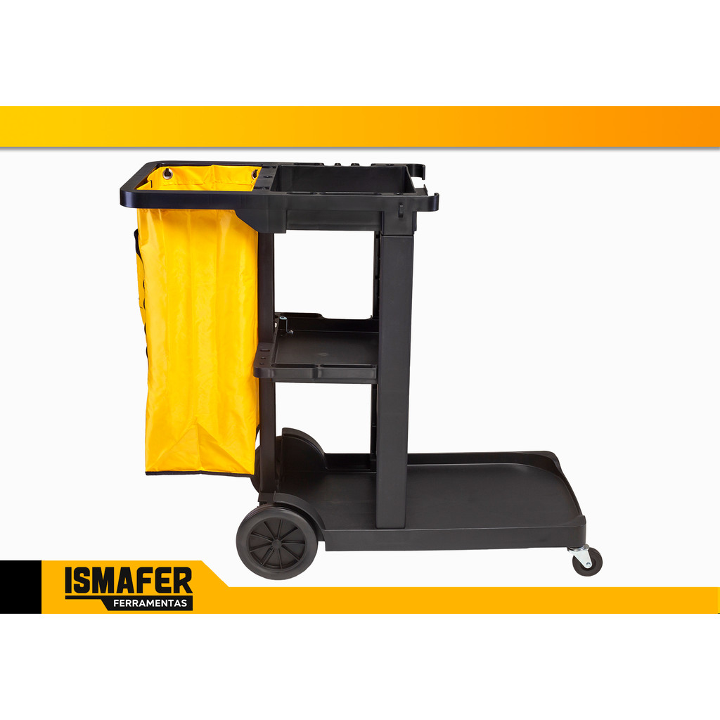 Distribuído por Ismafer Ferramentas Carro de Limpeza Multifuncional Basic Black - Perfect Pro Condor O Carro Funcional da Perfect Pro é um produto de alta qualidade, projetado para facilitar a sua vida. Com uma estrutura robusta e resistente, este carrinho funcional é ideal para uso em escritórios, escolas, hospitais e outros ambientes que requerem limpeza e organização constantes. Este carrinho é da marca Perfect Pro, conhecida pela sua excelência em produtos de limpeza. Ele vem na cor Preta e Amarela ou Cinza e Amarela, uma combinação que não só é atraente, mas também prática, pois ajuda a esconder a sujeira e manchas. Este carrinho é compacto, mas oferece muito espaço para armazenar e transportar seus materiais de limpeza. O Carro Funcional Perfect Pro não inclui balde, mas vem com um saco amarelo, que é perfeito para descartar lixo ou guardar produtos de limpeza. Além disso, este carrinho tem duas prateleiras, proporcionando espaço extra para você organizar seus itens. O Carro Funcional é fácil de manusear e mover, tornando a limpeza e a organização mais eficiente. Com este carrinho, você pode ter todos os seus materiais de limpeza em um só lugar, economizando tempo e esforço. Adquira o Carro Funcional Perfect Pro e torne a limpeza uma tarefa mais simples e prática. Ficha técnica: Marca: Perfect Pro Condor Cor: Preto Prateleiras: 2 Acompanha: - 1 Carro multifuncional - 1 Saco coletor Peso: 14.5kg Garantia: 3 meses pelo fornecedor Sku: 23317 Distribuído por Ismafer Ferramentas