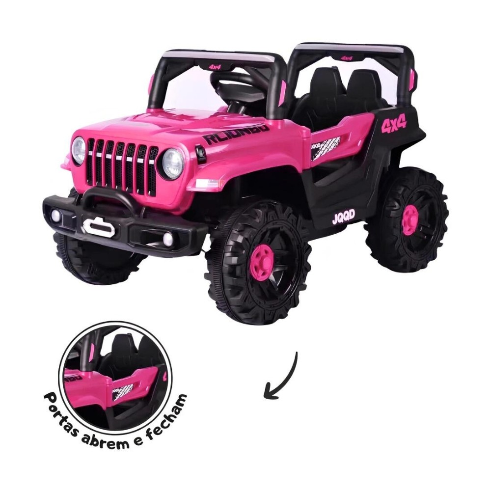 Carro Elétrico Infantil Jipe Off-Road 12V Rosa - Zippy Toys Proporcione uma experiência emocionante para seu pequeno com o Jipe Elétrico Off-Road da Zippy Toys! Imagine seu pequeno pilotando um Jipe em alta velocidade, com o vento no rosto e o ronco do motor ao fundo? Com o Jipe Elétrico Off-Road, o passeio se transformará em uma experiência emocionante, repleta de adrenalina e diversão! Inspirado em um Jipe real, ele possui uma estrutura robusta e estável, com rodas grandes e design de alta performance. Perfeito para os pequenos que adoram explorar a natureza, ele oferece uma pilotagem suave e potente, capaz de enfrentar diferentes tipos de terrenos. Equipado com uma bateria recarregável de 12v, garante longas horas de diversão com apenas uma carga. Fácil de dirigir, ele conta com um pedal único que funciona como aceleração e frenagem, permitindo que as crianças dirijam de forma segura. Seus detalhes encantadores como: painel multifuncional, portas que abrem, faróis em LED, led’s frontais coloridos piscantes e duas marchas (frente e ré) tornam a experiência ainda mais realista e divertida. E o melhor: o som da buzina e o ronco do motor completam a atmosfera de um verdadeiro motorista de Jipe! O Jipe Off-Road também vem com um sistema de som integrado, que inclui entrada para cabo auxiliar e USB. Assim, as crianças podem escolher suas músicas favoritas para acompanhar a aventura. E, para os momentos de descanso, os pais podem utilizar a função de ninar, criando uma experiência ainda mais completa e relaxante. Além de ser super divertido para as crianças, o Jipe oferece duas maneiras de brincar: elas podem pilotar sozinhas, como um motorista de verdade, ou os pais podem controlar o veículo através do controle remoto. Uma experiência interativa e segura para todas as idades! Pensado para oferecer segurança máxima, ele possui assento duplo superconfortável com encosto de cabeça e o pedal proporciona aceleração gradual com frenagem suave, garantindo uma condução segura e controlada para os pequenos. Mais do que uma simples forma de entretenimento, ele desempenha um papel importante no desenvolvimento das habilidades motoras e da coordenação das crianças. Ao conduzir o Jipe, elas praticam a destreza e a concentração, promovendo o aprendizado de forma lúdica e ativa ao ar livre. Cada volta e cada aceleração ajudam a desenvolver a confiança e a independência. Com o Jipe Elétrico Off-Road da Zippy Toys a diversão é garantida em todos os momentos! Principais Características: -ACOMPANHA CARREGADOR/FONTE BIVOLT - Idade Recomendada: A Partir de 3 anos - Peso Máximo Suportado: 30kgs - Possui Botão com 2 Marchas (Frente e Ré) - Botão Liga e Desliga - Possui Painel Multifuncional com Entrada USB - Alto Desempenho e Durabilidade - Pedal Único de Aceleração / Frenagem - Aceleração Gradual e Frenagem Suave - Faróis em LEDs Brilhantes que Acendem - Led’s Frontais Coloridos Piscantes - Bateria Recarregável de 12v - Com Ronco do Motor, Música e Função Ninar - Motor Super Potente - Estrutura e Rodas Robustas - Possui Assento Duplo Confortável - Assento Duplo Confortável com Encosto de Cabeça - Portas que Abrem de Verdade - Acompanha Pá e Controle Remoto Especificações Técnicas: - Conteúdo da Embalagem: 1 Jipe Elétrico Infantil Off-Road Rosa - Zippy Toys - Dimensões do Produto (AxLxP): 61,0 x 56,0 x 96,0 cm - Composição/Material: Plástico e Aço Carbono - Alimentação: Bateria Recarregável 12V / 1Ah - Peso: 21,100kgs - Garantia: 90 dias (Contra Defeitos de Fabricação Pelo Fabricante) - Certificação: 004499/2023 - Código do Fabricante: 10542 - EAN: 7908216135703 - Marca: Zippy Toys Imagens Meramente Ilustrativas. As cores e estampas podem variar de acordo com o lote do fabricante.