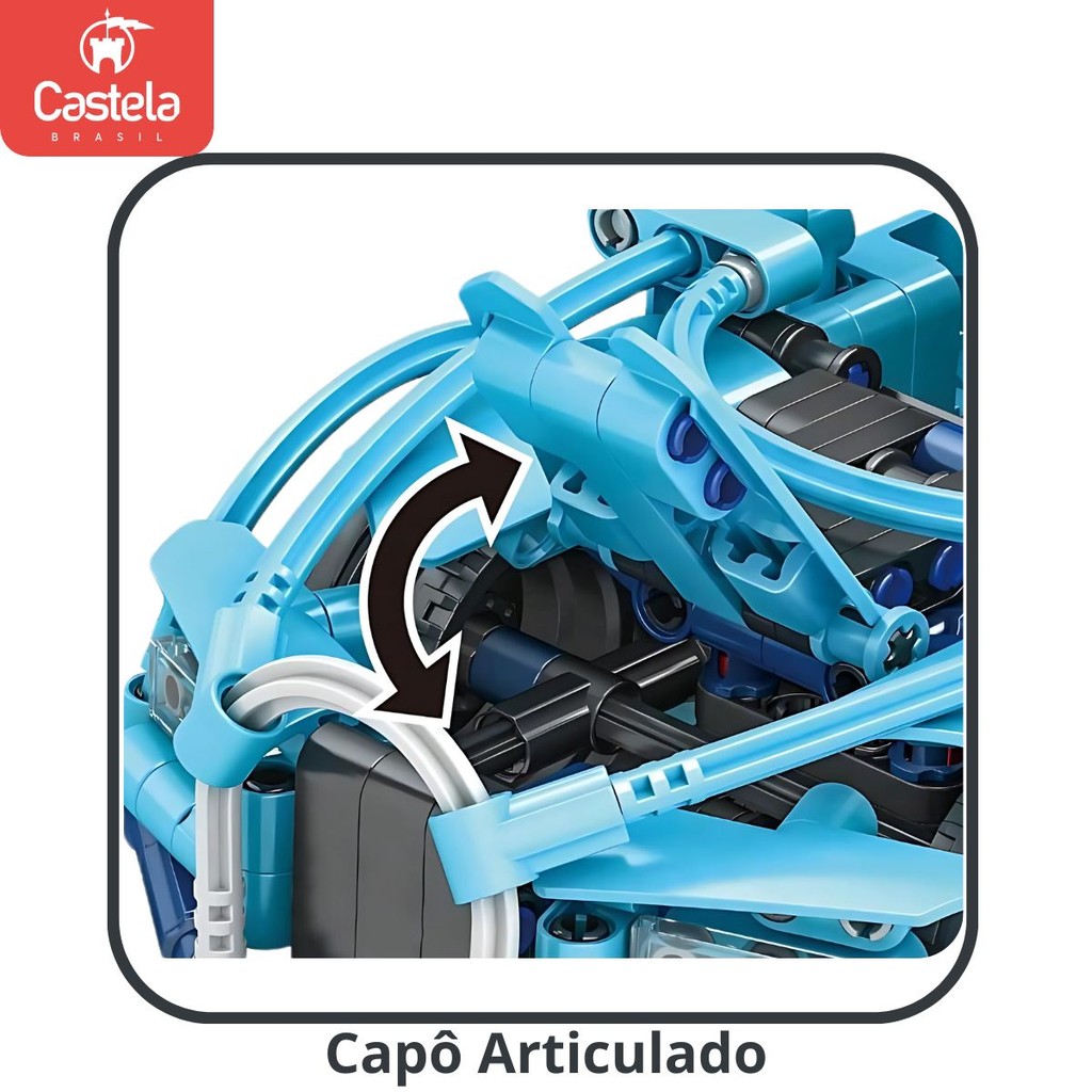 DESCRIÇÃO DO PRODUTO CARRO ESPORTIVO TUNADO CASTELA Transforme seu tempo livre em diversão e criatividade com o Carro Esportivo Tunado Castela Com esse kit incrível, você poderá montar seus próprios carros esportivos personalizados com design tunado, garantindo horas de entretenimento para crianças e adultos. Características principais: Design tunado: Detalhes realistas e modernos inspirados nos carros esportivos de alta performance. Alta qualidade: Blocos resistentes e fáceis de montar, compatíveis com outras marcas. Estimula a criatividade: Ideal para quem ama desafios de construção e carros. Faixa etária: Recomendado para crianças a partir de 6 anos e para fãs de blocos de montar de todas as idades. Dimensões do produto: Varia conforme a montagem. Conteúdo do pacote: Kit com peças de montar + manual de instruções detalhado. CARACTERÍSTICAS TÉCNICAS: Conteúdo da Embalagem: 509 Peças Dimensões Aproximadas da Embalagem: 54cm x 37cm x 10cm (Altura x Largura x Comprimento/Profundidade). Material/Composição: Plástico Idade Mínima Recomendada: A partir de 6 Anos Participantes: A partir de 1 pessoa Alimentação: Não se aplica Marca: Castela Referência: CBS0095 Outras informações: As cores podem variar entre as imagens mostradas acima e o produto. Imagens meramente ilustrativas. Aviso: As informações e imagens divulgadas são de total responsabilidade do fabricante/fornecedor. Produto lacrado e disponível a pronta entrega para todo Brasil! APROVADO PELO INMETRO
