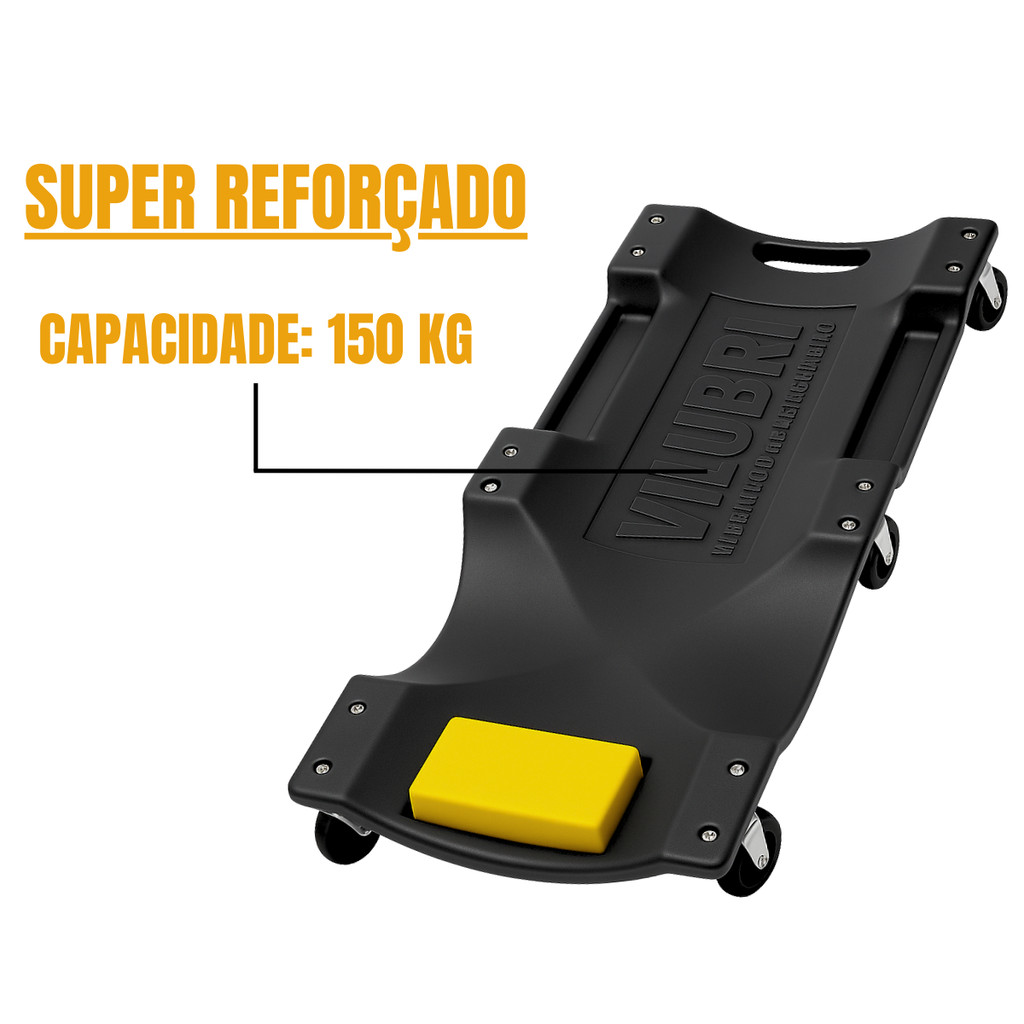 Carro Esteira Para Mecânico com Encosto 2564 - Preto Vilubri O Carro Esteira para Mecânico com Encosto 2564 da Vilubri foi desenvolvido para proporcionar mais conforto, mobilidade e praticidade durante serviços automotivos. Ideal para oficinas mecânicas, centros automotivos e manutenção em veículos, permite que o profissional trabalhe com facilidade na parte inferior do veículo. Fabricado com estrutura resistente, o equipamento possui base reforçada que suporta o peso do usuário com segurança. Seu design ergonômico conta com encosto para a cabeça, oferecendo maior conforto durante trabalhos prolongados. Equipado com rodízios giratórios de alta resistência, o carro esteira permite deslocamento suave e fácil movimentação em diferentes direções, facilitando o acesso a diversas áreas do veículo sem necessidade de reposicionamento constante. O modelo 2564 possui acabamento na cor preta, design compacto e superfície confortável, sendo uma solução prática e eficiente para melhorar a produtividade no ambiente de trabalho. Principais Características: Modelo: 2564 Tipo: Carro esteira para mecânico Cor: Preto Estrutura reforçada e resistente Encosto para cabeça que proporciona maior conforto Rodízios giratórios que facilitam a movimentação Design ergonômico para uso prolongado Ideal para serviços automotivos e manutenção de veículos Aplicações: Oficinas mecânicas Centros automotivos Manutenção e inspeção de veículos Trabalhos na parte inferior de automóveis Conteúdo da Embalagem: 1 Carro Esteira para Mecânico com Encosto 2564 Preto Informações Adicionais: Produto projetado para oferecer mobilidade, resistência e conforto ao profissional durante serviços automotivos, contribuindo para maior eficiência e praticidade no dia a dia da oficina.