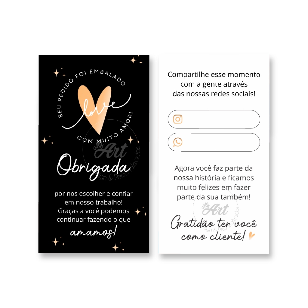 Cartão agradecimento ao cliente obrigada pela compra preto e dourado