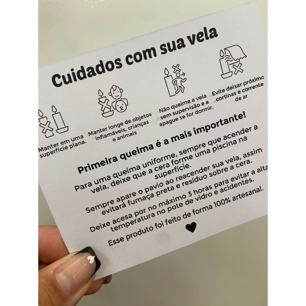 Cartão Cuidados com a sua Vela Tamanho: 10x9cm Material: Kraft 200g ou Offset 200g Produto enviado conforme a foto do anuncio, nao fazemos alteracao nesse anuncio, caso queira personalizado, é só pedir um link