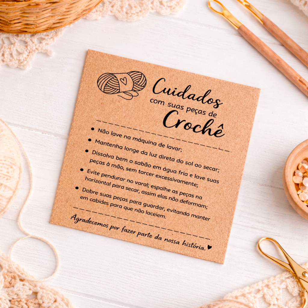 Cartão Cuidados Crochê papel Kraft 9x10cm - Tag lavagem da peça