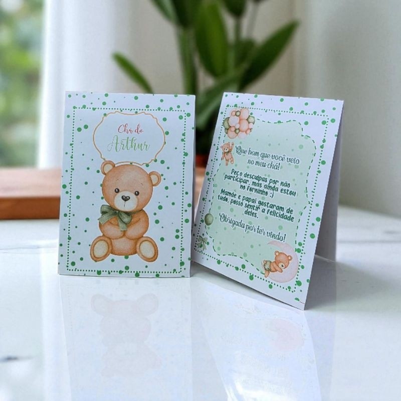 Cartão de Agradecimento para Mesa de Convidados Chá Ursinho Baloeiro Verde