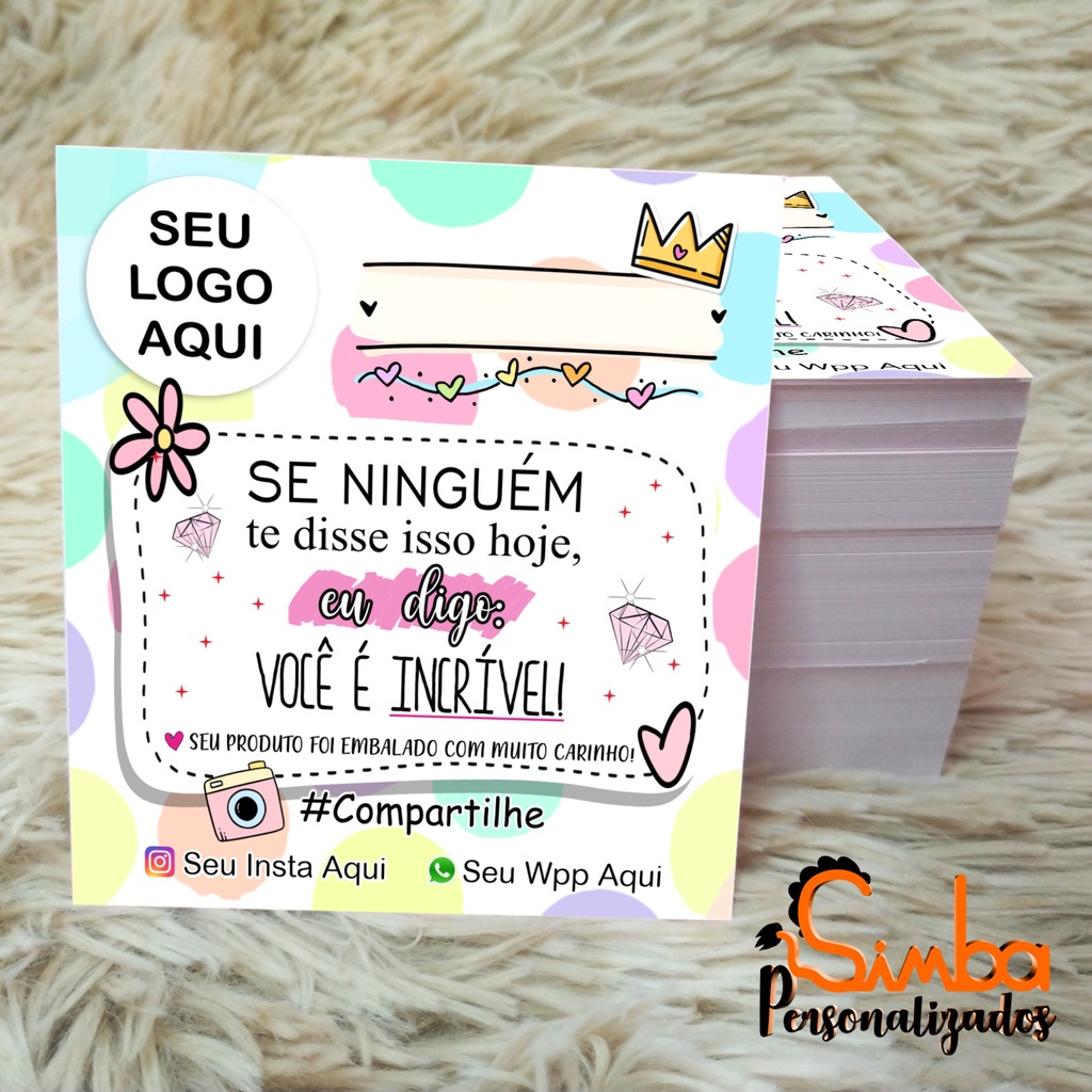 | Cartão de Agradecimento Personalizado - 100un 10x9cm este produto | R$ 41,99 | — | 5.0/5 | 13 |