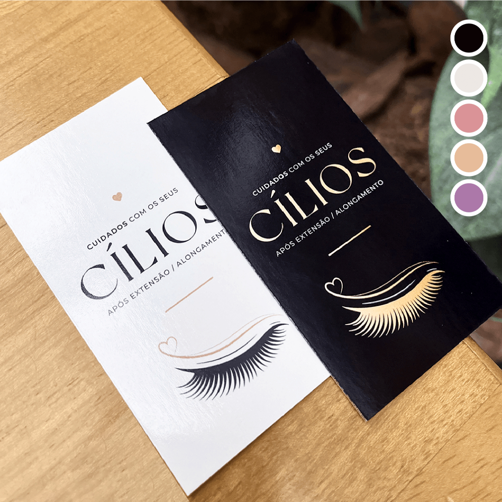 Cartão de Cuidados Alongamento e Extensão de Cílios - 9x5cm - Lash Design - CILIOS