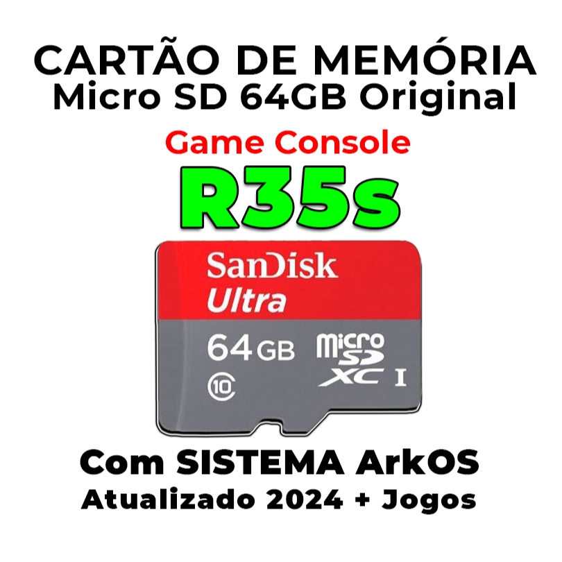 | Cartão de Memória 64GB Para R35s/R36s Com Sistema ArkOS Atualizado ... este produto | R$ 139,90 | — | 4.8/5 | 36 |