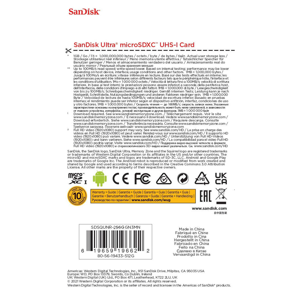 Cartão de Memória MicroSD Sandisk 256GB Ultra Velocidade de 100Mbs alta capacidade Armazenamento Gravação e Reprodução de Vídeos Full HD e Fotos de Alta Resolução Design Compacto - No Brasil Aumente a capacidade do seu smartphone, câmera ou outro dispositivo com o Cartão de Memória MicroSD Sandisk 256GB Ultra. Com 256GB de armazenamento, você tem amplo espaço para suas fotos, vídeos, músicas e documentos de trabalho; Este cartão MicroSD oferece velocidade de transferência de até 100Mbs, proporcionando transferências de arquivos rápidas e eficientes entre seus dispositivos. Isso significa que você pode passar menos tempo esperando e mais tempo desfrutando do seu conteúdo; O cartão de memória também é otimizado para a gravação e reprodução de vídeos Full HD. Portanto, você pode capturar e preservar seus momentos favoritos em alta qualidade sem se preocupar com espaço ou velocidade; O Cartão de Memória MicroSD Sandisk 256GB Ultra apresenta um design compacto e discreto. Pequeno o suficiente para caber em qualquer bolso ou estojo de transporte, tornando-o perfeito para viagens ou uso diário; Finalmente, este cartão é fácil de usar. Basta inseri-lo no slot MicroSD de seu dispositivo e você estará pronto para começar a armazenar e acessar seus arquivos. Garantia: 90 dias.