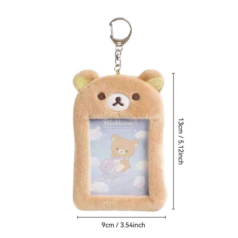 Cartão de pelúcia de urso, porta-cartões de armazenamento de documentos, chaveiro criativo de desenho animado de 3 poleg