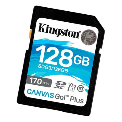 Cartão Memória SDXC 128GB Canvas Go Plus 170MBs Kingston O cartão de memória SD Canvas Go Plus da Kingston foi projetado para apresentar um desempenho excepcional, velocidade e durabilidade para cargas de trabalho mais intensas. Conta com interface de barramento UHS-I que permite desempenho superior para gravação de vídeo em Full HD e Ultra HD 4K, classe de velocidade c10 e velocidade de leitura de até 170MBs, o que possibilita armazenar e transferir seus arquivos de forma rápida e segura. Vale também mencionar que este cartão SD foi desenvolvido para funcionar nos ambientes e condições mais adversas, dispõe de classificação V30 e permite velocidade mínima sustentada de até 30MBs para que você possa capturar vídeos de qualidade cinematográfica. Especificações: Marca: Kingston Modelo: Canvas Go Plus Capacidade: 128GB Tensão: 3,3V Classe de vídeo: V30 Referência: SDG3/128GB Classificação de velocidade: C10 Velocidade de leitura: 170MBs Temperatura de armazenamento: -40°C a 85°C Temperatura de operação: -25°C a 85°C Capture imagens e vídeos em Full HD (1080p) e 4K UHD Classe de velocidade UHS: U3 Dimensões: 24 x 32 x 2,1 mm Garantia: 90 dias Venda condicionada a existência de produto em estoque