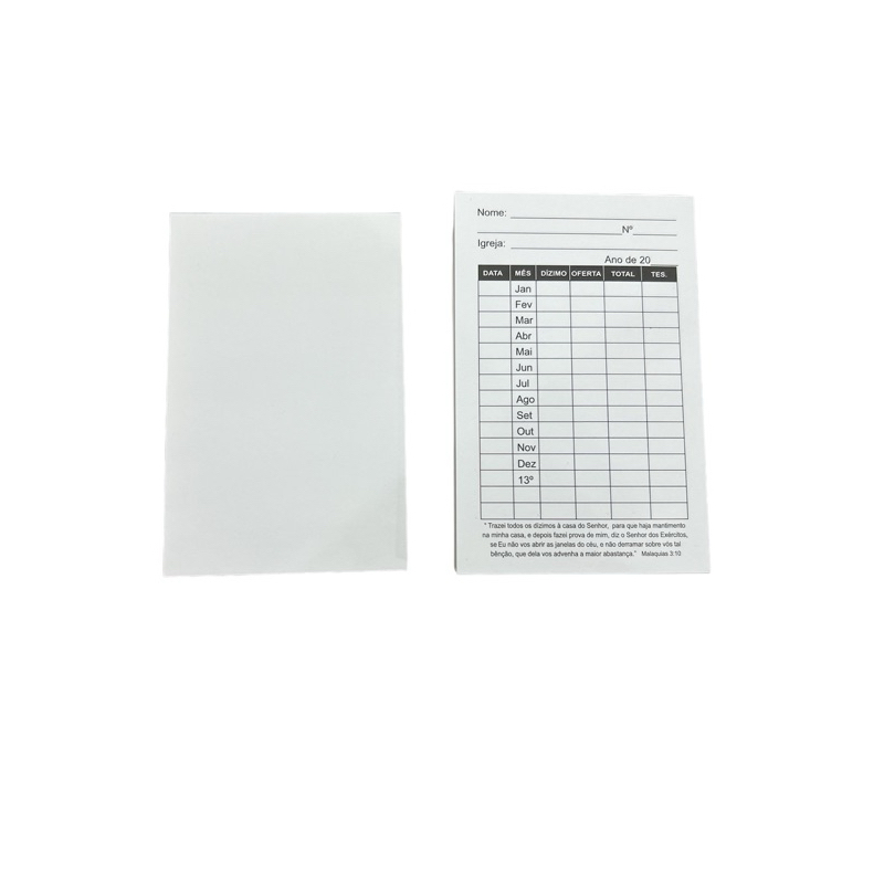 Cartão Para controle financeiro Dízimos Pacote Com 100 Unidades