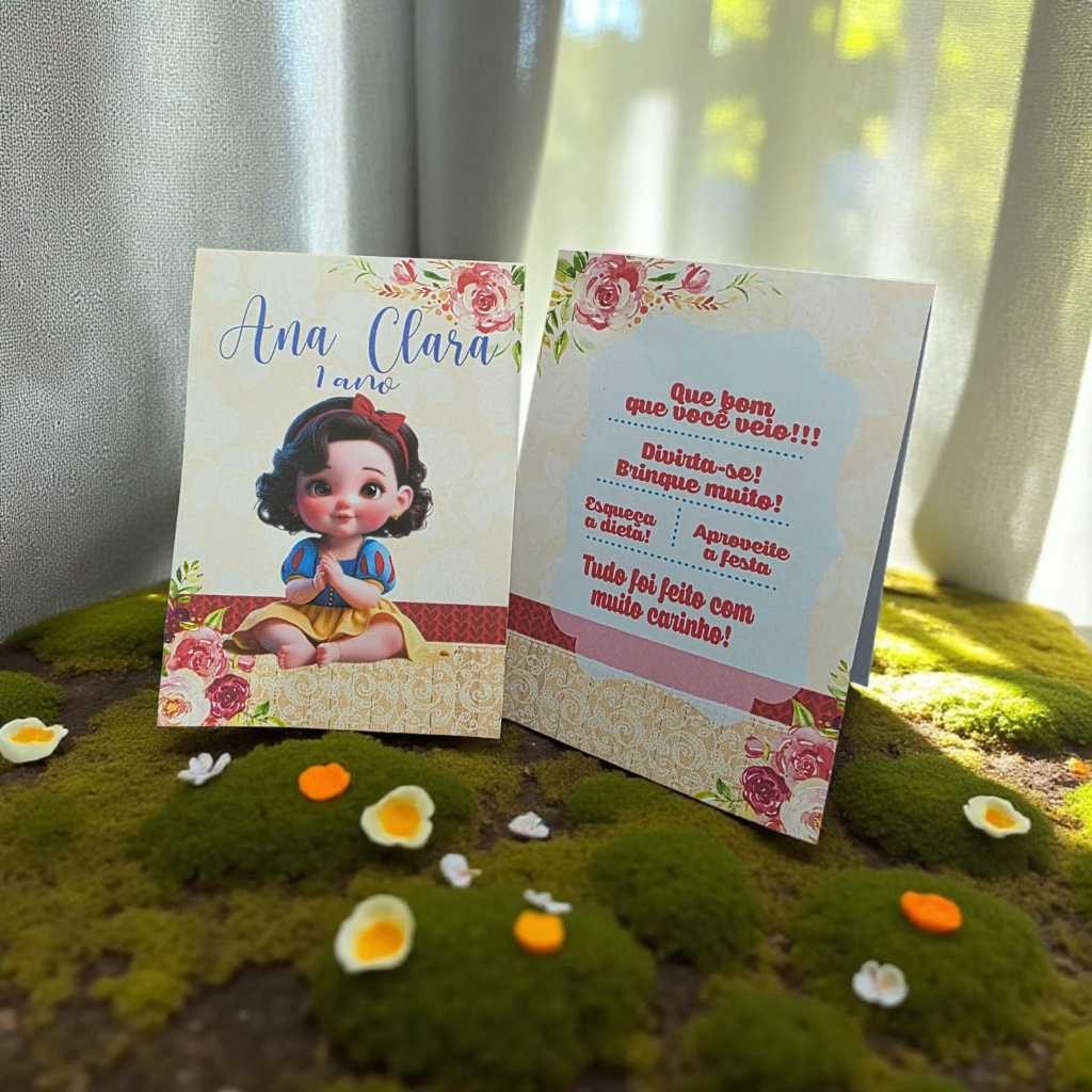 Cartão Plaquinha de Agradecimento para Mesa de Convidados Branca de Neve Baby