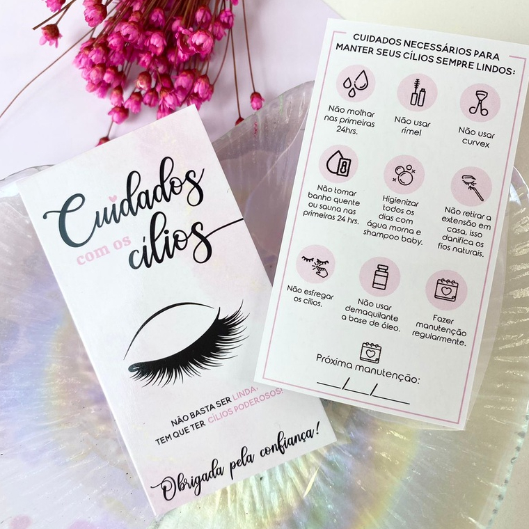 Cartão Tag Cuidado com Cilios e extensão de cilios para clientes 50un 100un 5x9