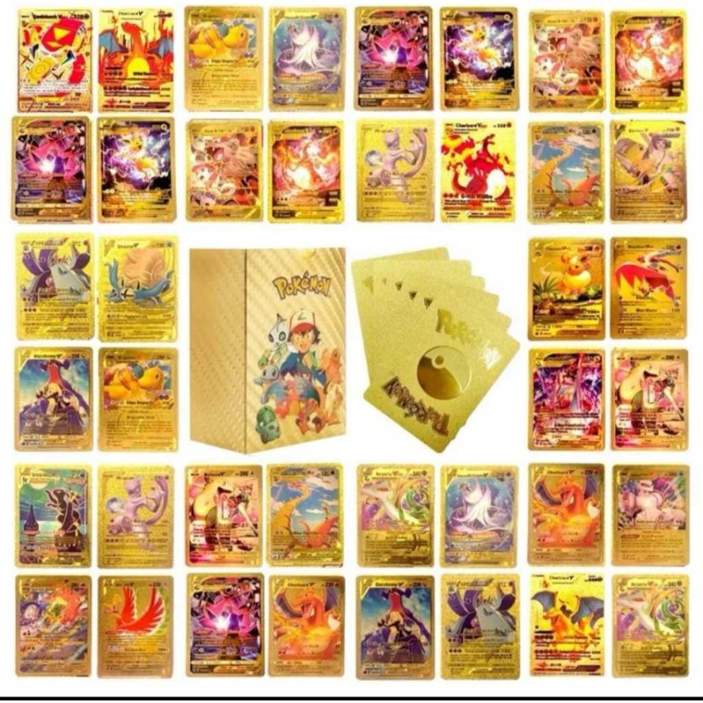 Cartas Pokémon Charizard – Kit 55 Cards Especial, Ouro, Prata e Preto em Inglês | Cards Coleção e Batalha Infantil