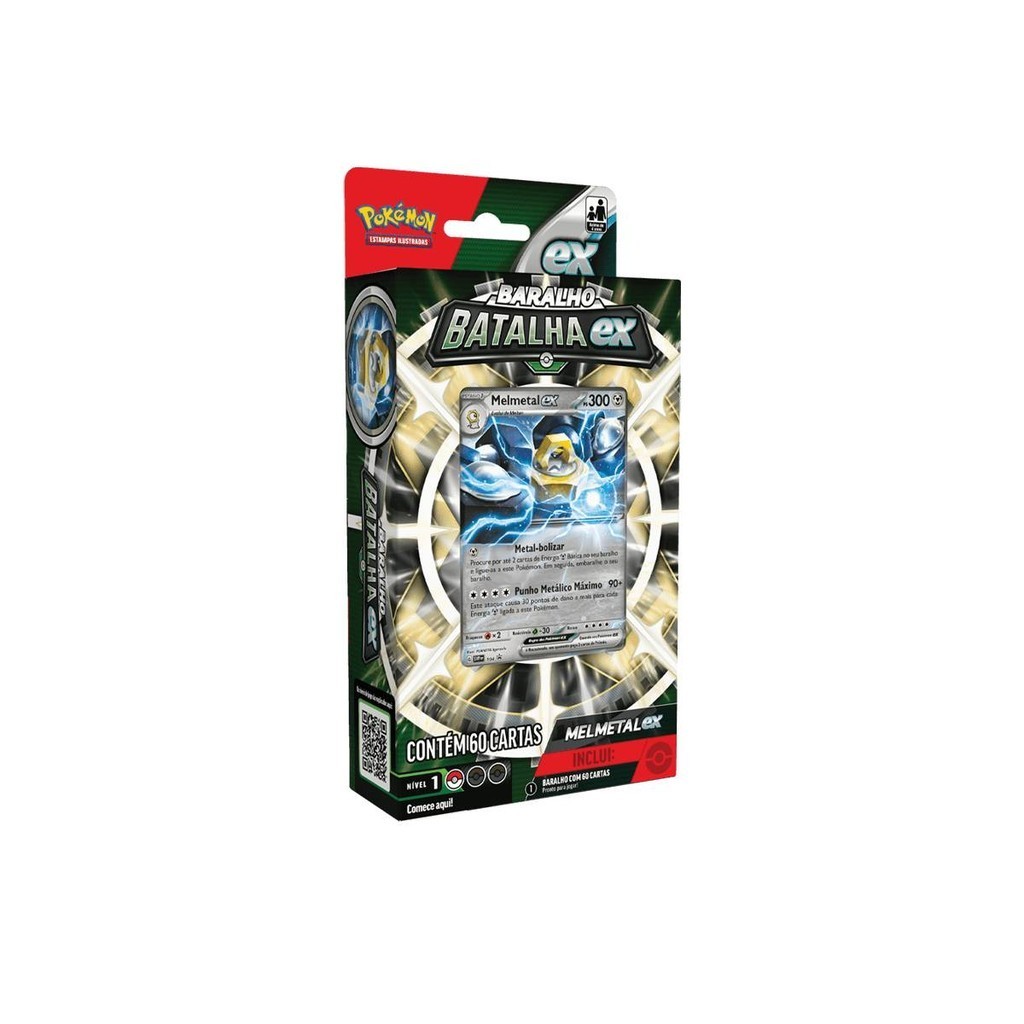 Cartas Pokémon Deck Cards Baralho de Batalha EX - Copag Descubra a emoção das batalhas Pokémon com o Deck Baralho Batalha da Copag, onde cada escolha é uma nova oportunidade de brilhar. Este deck oferece duas opções impressionantes, permitindo que você escolha entre Melmetal e Houndoom para liderar suas batalhas com poder e estratégia. Escolha Melmetal se você deseja uma abordagem robusta e imbatível. Com um deck centrado em Melmetal, você terá acesso a um Pokémon com uma força metálica inigualável, equipado com ataques pesados e táticas de defesa sólidas. A força de Melmetal garante que você possa resistir a ataques e revidar com uma potência esmagadora, ideal para quem prefere uma estratégia mais defensiva e poderosa. Ou, se sua preferência é por uma abordagem mais ágil e ofensiva, Houndoom é a escolha certa. Este deck é perfeito para quem gosta de velocidade e ataques de fogo ardentes. Houndoom traz uma combinação de habilidades de fogo e trevas que podem infligir danos devastadores aos adversários e criar um campo de batalha intenso e emocionante. Com Houndoom, suas táticas serão rápidas e suas vitórias, flamantes. Cada baralho é cuidadosamente montado para proporcionar uma experiência de jogo equilibrada e emocionante, com cartas de Pokémon, treinadores e itens que combinam perfeitamente com o estilo de combate de Melmetal ou Houndoom. Escolha o seu Pokémon, prepare suas estratégias e mergulhe na ação com confiança, pronto para dominar qualquer desafio que apareça no caminho. Principais Características: - Idade Recomendada: A Partir dos 4 Anos - Quantidade de Jogadores: 2 ou mais (Cada jogador deve ter um baralho de 60 cartas de Pokémon TCG para jogar) - Escolha entre os personagens: Melmetal EX ou Houndoom EX - O Deck Melmetal ex contém: 1 Melmetal ex, 3 Meltan, 3 Revavroom, 4 Varoom, 2 Orthworm, 2 Zacian, 2 Bronzong e 2 Bronzor. Cartas de treinador: 3 Noêmia, 3 Roark, 2 Jovem, 1 Jacques, 1 Kaya, 4 Grande Bola, 3 Substituição, 2 Adesivo de Energia, 2 Bola de Ninho e 1 Poção. Cartas de energia: 19 Energia Básica. - O Deck de Batalha Houndoom ex contém: 1 Houndoom ex, 2 Houndoom, 3 Houndour, 2 Umbreon, 3 Eevee, 2 Lokix, 3 Nymble, 2 Seviper e 2 Morpeko. Cartas de Treinador: 4 Noêmia, 2 Kaya, 2 Roark, 2 Jovem, 1 Jacques, 4 Grande Bola, 2 Adesivo de Energia, 2 Bola de Ninho, 2 Poção e 1 Substituição. Cartas de Energia: 18 Energia Básica. Especificações Técnicas: - Conteúdo da Embalagem: 1 Baralho com 60 cartas pronto para jogar. - Composição/Material: Papel e Plástico - Certificação INMETRO Registro 008 140/2021 - Garantia: 30 Dias (Contra Defeito de Fabricação Pelo Fabricante) - Referência do Fabricante: 41140 - EAN: 7896192339454 - Marca: Copag Imagens meramente ilustrativas, as cores e estampas podem variar de acordo com o lote do fabricante.