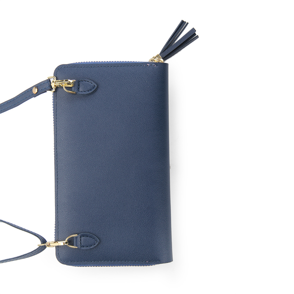 Carteira Bolsa Zíper Alça Transversal Logo personalizado Azul