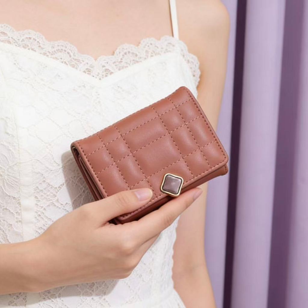 Carteira Curta Feminina Com Textura De Xadrez Cartões Com Vários Compartimentos E Moedas Dobrável Simples D464 LING