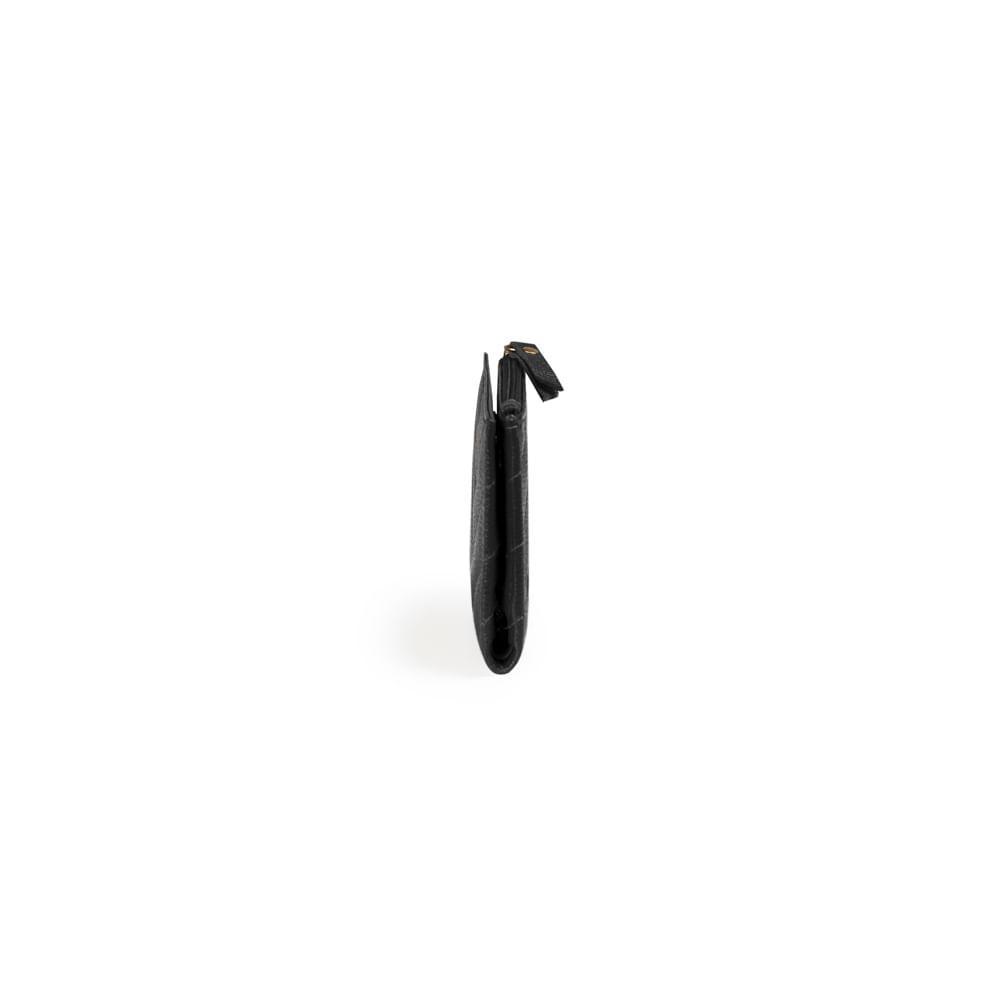 Carteira de Couro Feminina com Zíper Pequena Zig Zag Preta