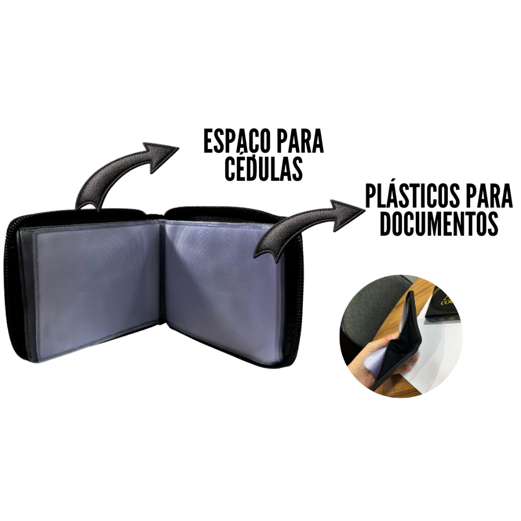 Carteira De Couro Premium Com Zíper Porta Cartões Masculino