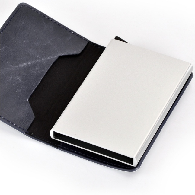 Carteira Ejetora Automática Slim Fibra De Carbono couro Anti Furto Proteção Cartões