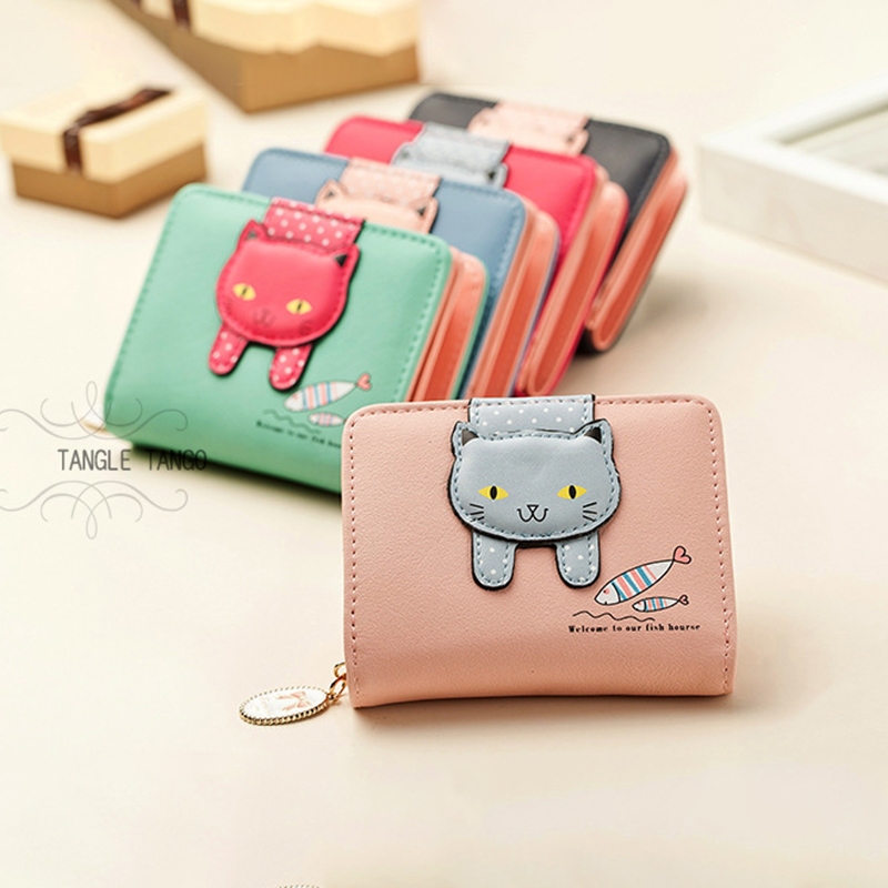 Carteira Feminina Pequena De Gato Fofo Para Moedas/Cartão/Garotas