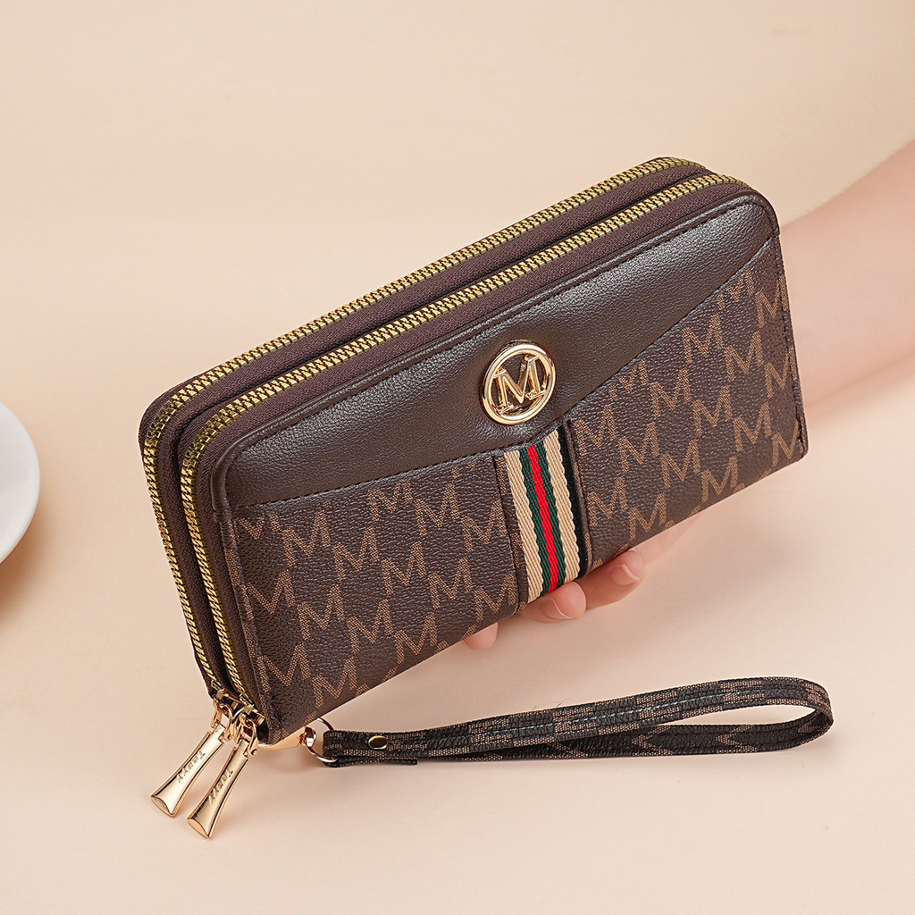 Carteira Grande de Couro Longa Feminina Moda com Duplo Zíper Carteira de Grande Capacidade