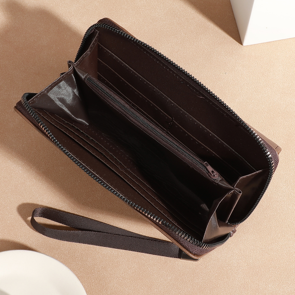 Carteira longa feminina com zíper - Bolsa para celular e cartões de couro PU de grande capacidade com design de vários