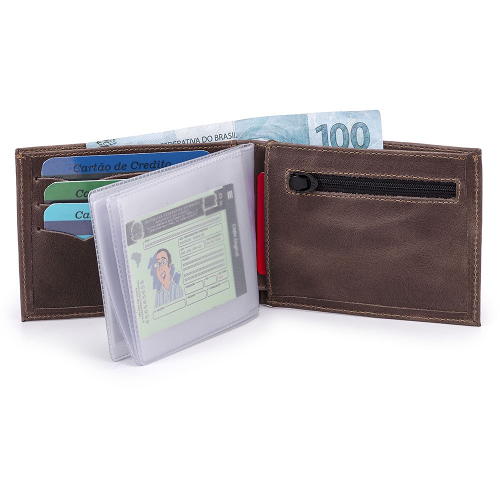 Carteira Luxo Couro Legítimo Rg/cnh/cédulas/cartões/moedas