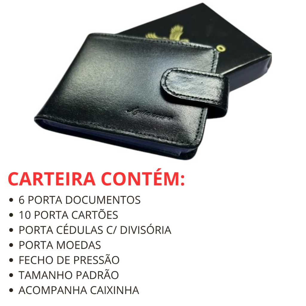 | Carteira Masculina Couro 100% legitimo Premium Porta Cartões Com Fe... este produto | R$ 38,99 | 51% | 4.9/5 | 126 |