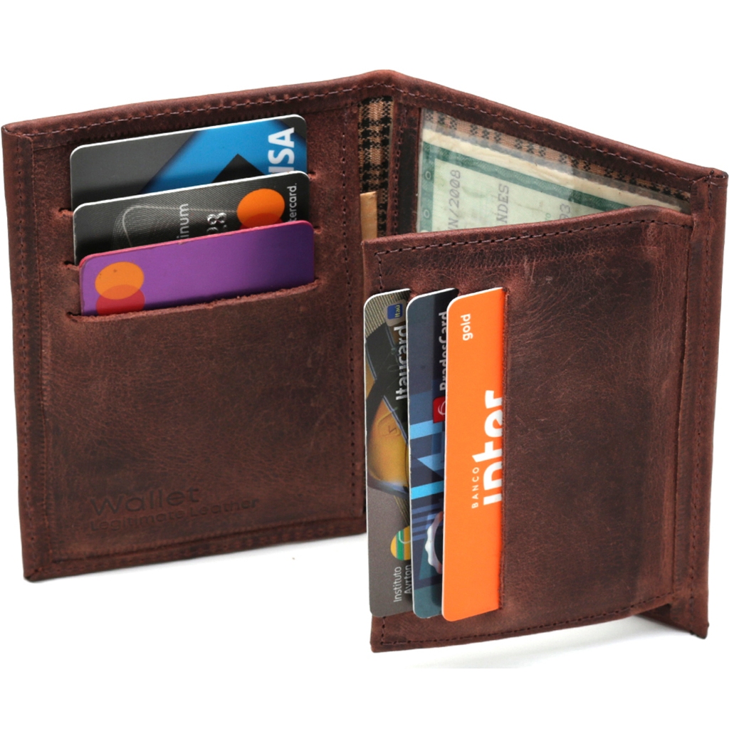 Carteira Masculina Couro Legítimo Porta Cartão Slim Pequena Fina para RG CNH Notas Design Premium