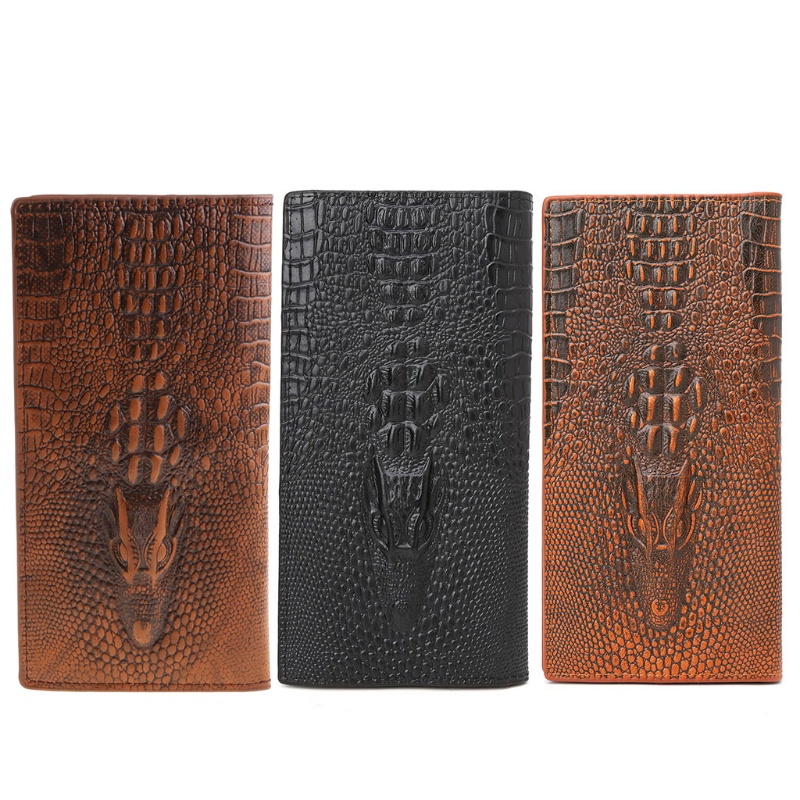 Carteira Masculina De Jacaré 3D Com Dobra Dupla Porta Cartão De Identificação Bolsa Para Estojo De Embreagem Longa Billf