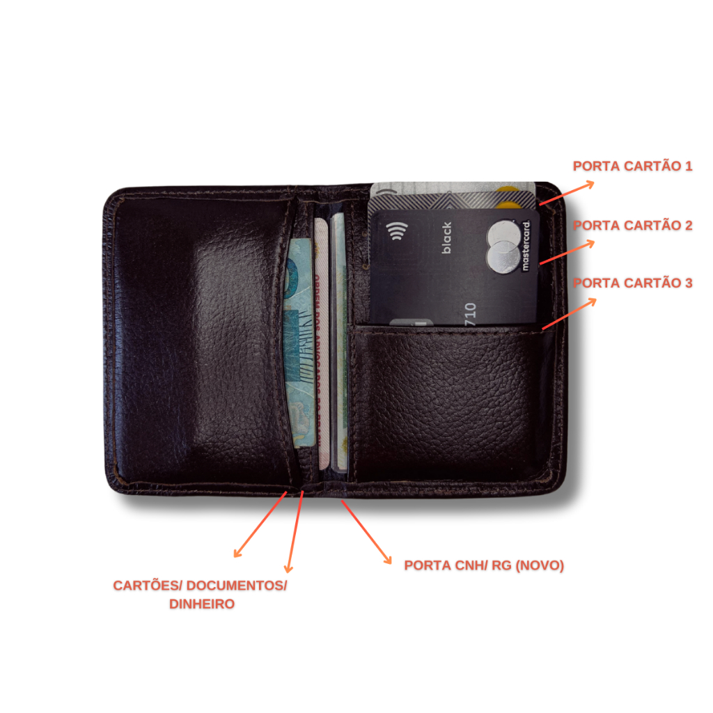 CARTEIRA PORTA CARTÃO MOEDA COURO DINHEIRO DOCUMENTO CNH CABE BOLSO MASCULINO FEMININO MARROM PRETO