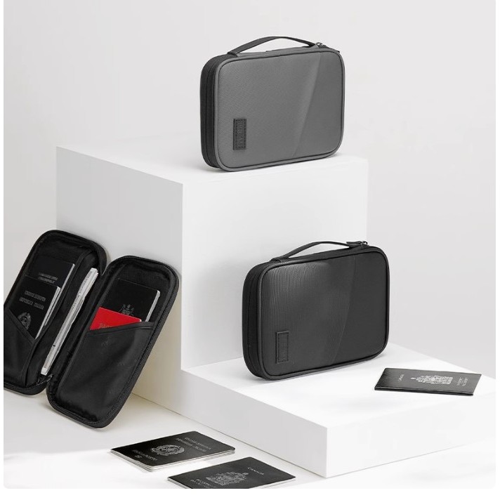 DESIGN VERSÁTIL: Carteira organizadora unisex com múltiplos compartimentos, ideal para guardar passaporte, documentos e cartões durante viagens PROTEÇÃO IMPERMEÁVEL: Material resistente à água protege seus documentos importantes contra respingos e acidentes com líquidos ORGANIZAÇÃO INTELIGENTE: Diversos bolsos internos específicos para passaporte, cartões, bilhetes e documentos de viagem PORTABILIDADE: Design compacto e leve com zíper de segurança, perfeito para transportar documentos essenciais CORES DISPONÍVEIS: Disponível em várias opções de cores incluindo bege, preto, azul marinho e cinza, combinando estilo e funcionalidade