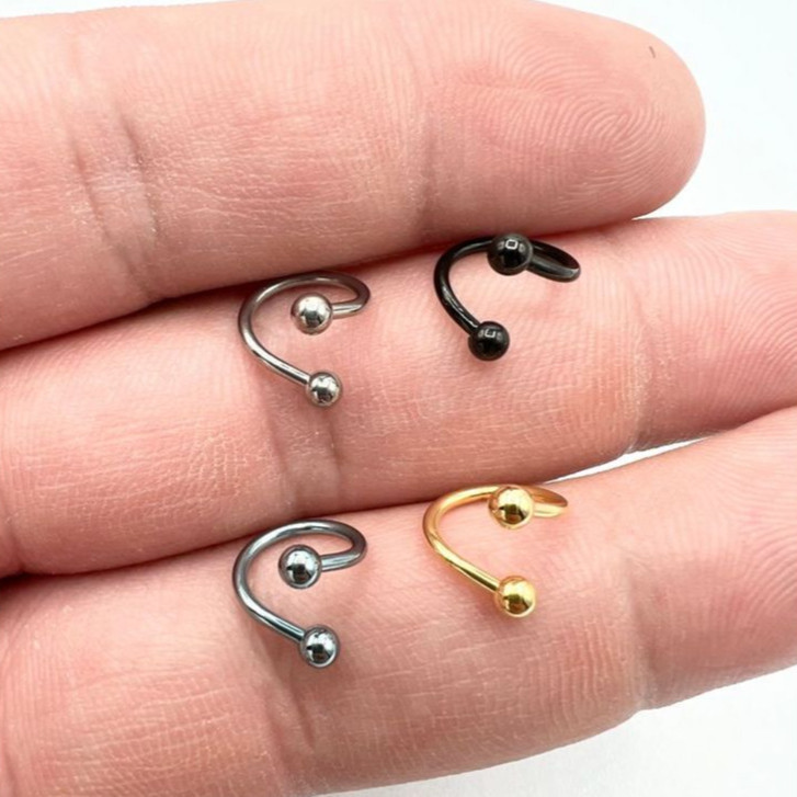 -DETALHES DO PIERCING: - Material: Aço inox MODELO: twister - espiral Material: Aço cirúrgico Espessura da haste: 1,0mm Diâmetro das bolinhas: 2mm Cor: Dourado ou prata