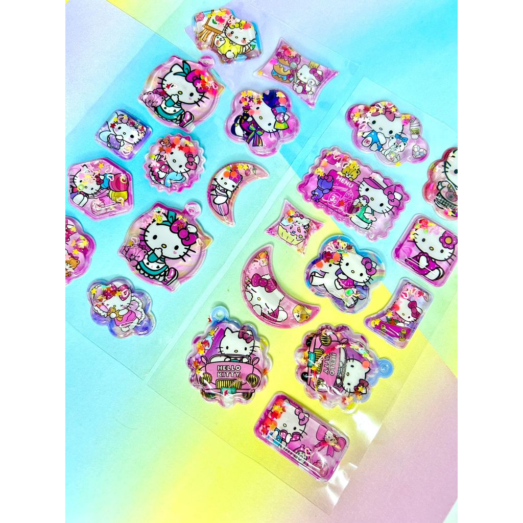 Cartela adesivos 3D com agua Shaker com chaveiro - Turma da Hello Kitty alto relevo