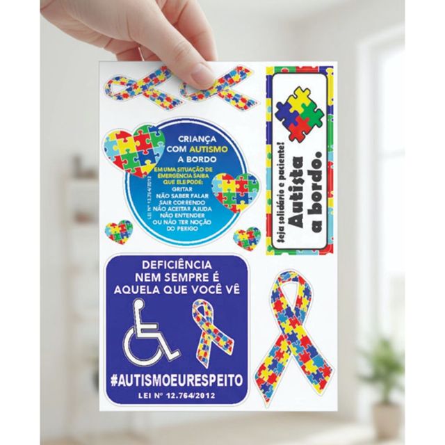 🧩 Cartela de Adesivos Autismo – Conscientização e Respeito 🧩 Cartela especial de adesivos sobre o Autismo, desenvolvida para promover conscientização, inclusão e respeito. Ideal para aplicar em carros, motos, notebooks, garrafas, cadernos, portas, vitrines e muito mais. Produzidos em vinil adesivo de alta qualidade, com cores vivas e excelente acabamento. 📏 Tamanho da Cartela: ✔ 19,5 x 28 cm 📐 Tamanhos dos Adesivos (aproximados): ✔ Adesivo redondo: 13 x 10 cm ✔ Adesivo quadrado: 12 x 12 cm ✔ Adesivo retangular: 5,5 x 15 cm ✔ Laço grande: 6,6 x 10,7 cm ✔ Laços pequenos: 3,8 x 6,6 cm (cada) ✔ Coração: 2,4 x 2,1 cm (cada) ✨ Características do Produto: ✅ À prova d’água ✅ Ótima resistência à chuva e ao tempo ✅ Excelente aderência em superfícies lisas ✅ Material: vinil adesivo ✅ Fácil aplicação ✅ Não desbota facilmente 💙 Mensagem Importante: A deficiência nem sempre é visível. Mais respeito, empatia e informação todos os dias. 📦 Produto enviado bem embalado 🛒 Ideal para uso pessoal ou para presentear