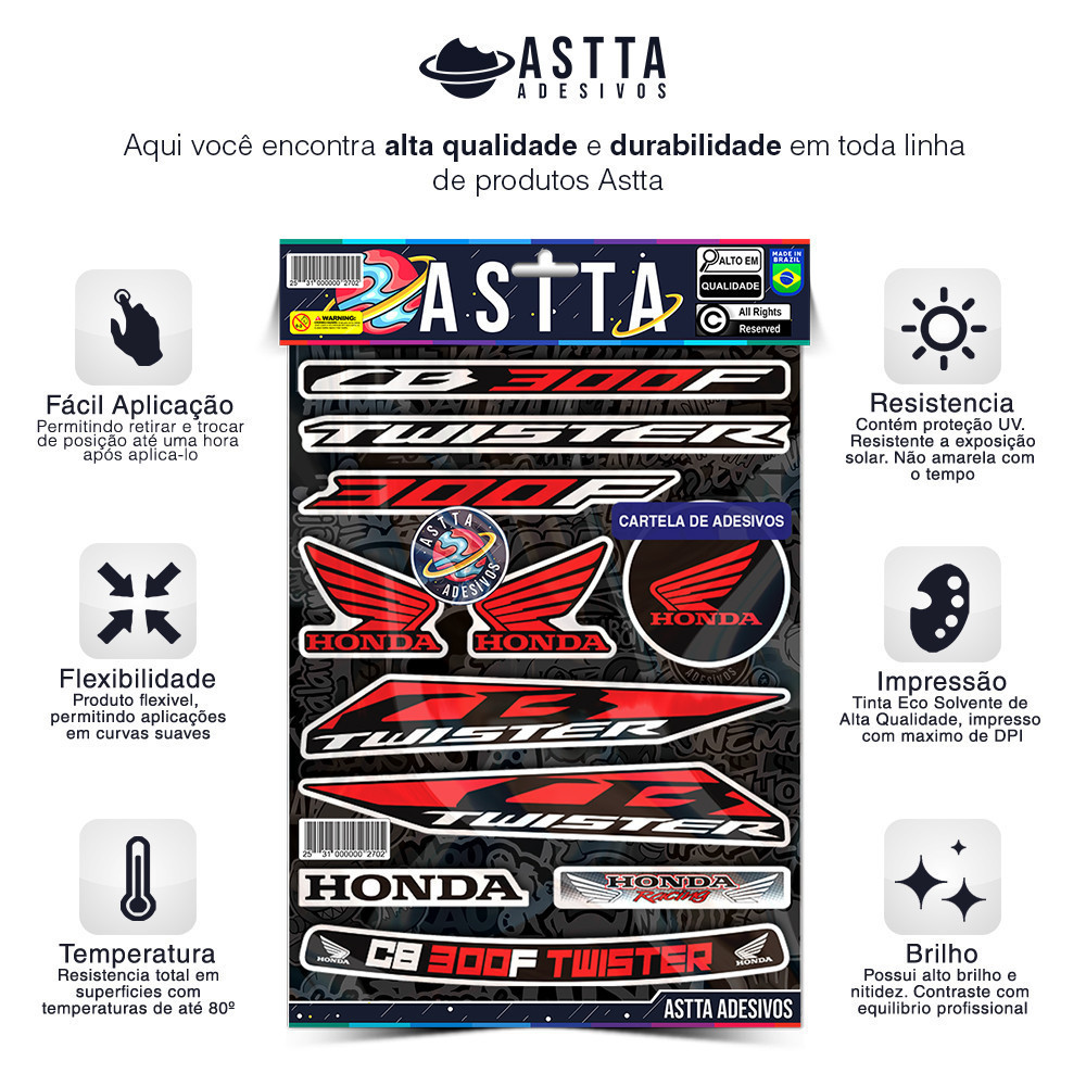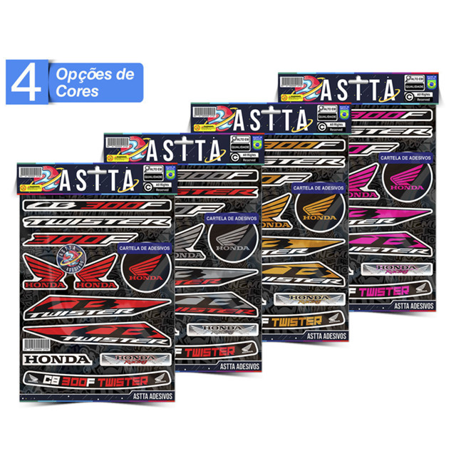 Cartela Adesivos Compativel com Honda CB 300F TWISTER Varias Cores Kit Envernizado Stickers para Moto Capacete